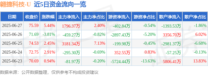 6月27日的资金流向数据方面,主力资金净流入1796.37万元,占总成交额2.4%,游资资金净流出402.84万元,占总成交额0.54%,散户资金净流出1393.53万元,占总成交额1.86%。